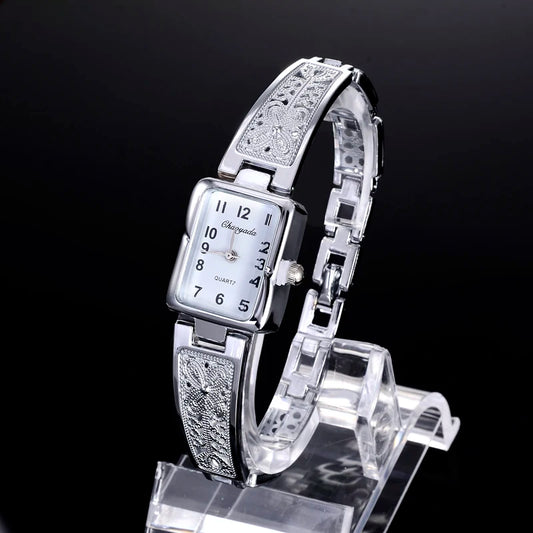Women Watch Rectangle Dial Silver Watch Stainless Steel Crystal Watches