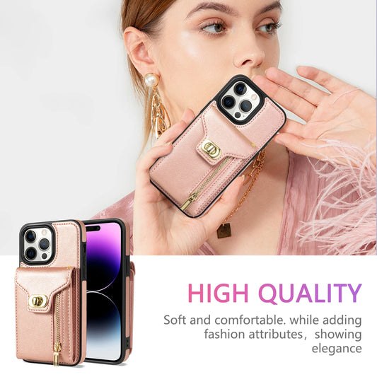 Zipper Crossbody Wallet Case for iPhone Metal Buckle Leather Card Slot Phone Cover