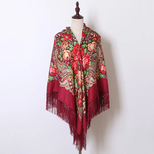 160*160cm Women Russian National Scarf Lady Tassel Floral Print Headscarf Wraps Babushka Bandana Beach Travel Shade Shawls