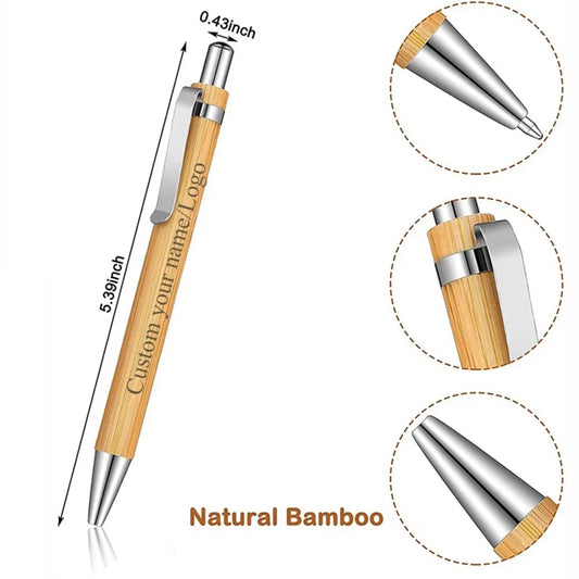 200-20Pcs Bamboo Pen Custom Logo Ballpoint Pens Wedding Gift For Baby Shower Baptism Party Pen