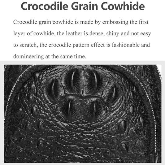 100% Cowhide Leather Men Crocodile Grain Fashion Black Multifunctional Leather Chest Bag