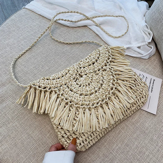 New Arrival Handmade Straw Shoulder Bags for Women Tassel Crossbody Bag Pouch Female Travel Beach Phone Purse Vintage Handbags