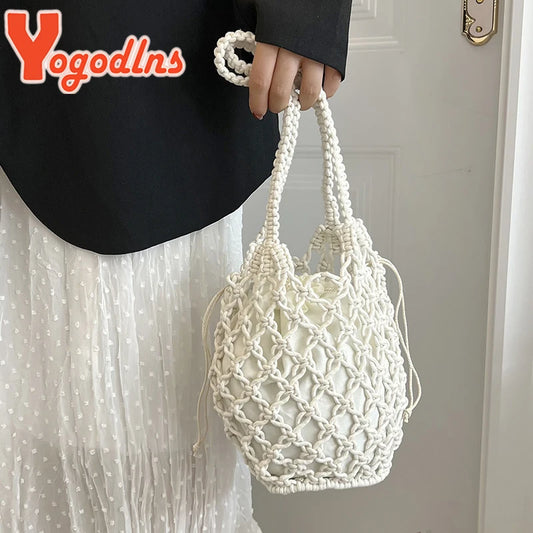 Drawstring Women's Straw Bucket Bag Summer Woven Shoulder Bags Purse Beach Handbag Straw Handbags Casual Crossbody Bag