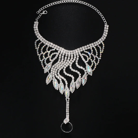 Luxury Hollow Rhinestone Harness Bracelet Finger Chain Crystal Wrap Bangle