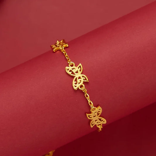Real Gold Chain Bracelet for Women Pure Adjustable Five Butterflies Jewelry