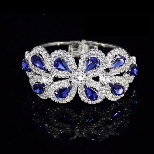 Luxury Rhinestone Drop Bangle Bracelet Bridal Hand Jewelry