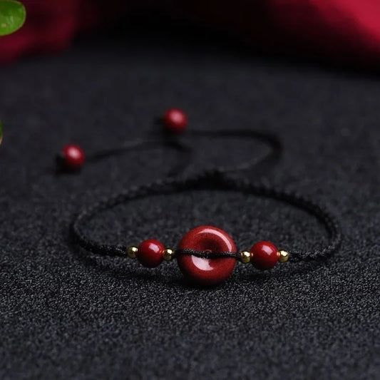 Customized Natural Red Cinnabar Yin Yang eight trigrams Beads Bracelet