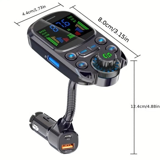 Bluetooth 5.0 Car FM Transmitter Dual USB Car Charger PD Type-C Fast Charging Wireless Handsfree Call Audio Receiver MP3 Player