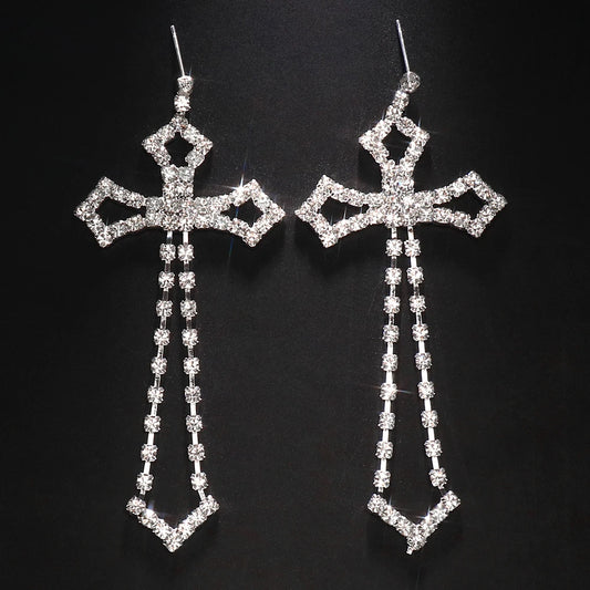 Bridal Crystal Cross Shape Long Earrings Sparkly Dangle Earrings