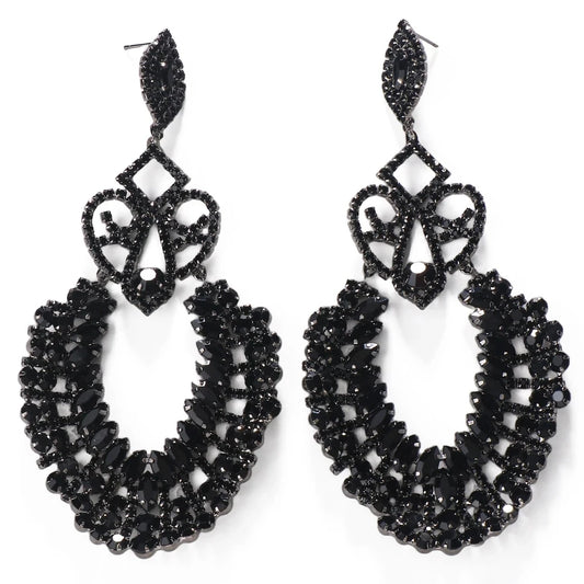 Black Hoop Dangle Earrings Luxury Crystal Earrings Big Circle Accessories