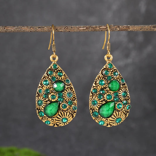 Ethnic Style Green Rhinestone Water Drop Earrings Dangle Earring Pendants
