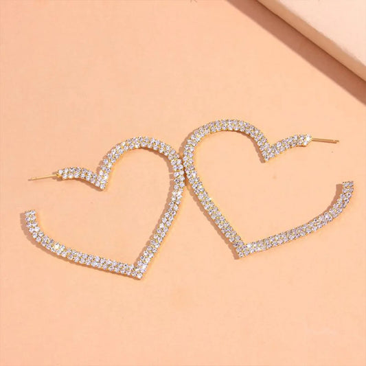 Rhinestone Hollow Heart Earrings Love Hoop Earrings Fashion Jewellery