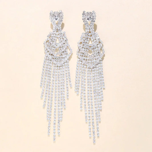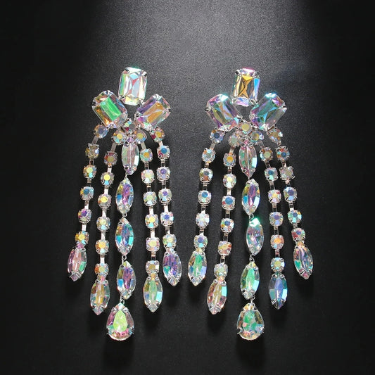 Long Tassel Rhinestone Earrings Crystal Dangle Earring Party Jewellery