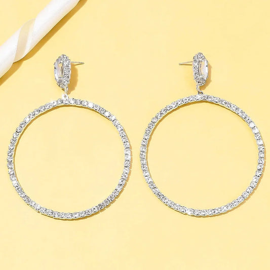 Lady Shiny Crystal Big Large Circle Hoop Earrings Round Ear Charming Hoops Earring