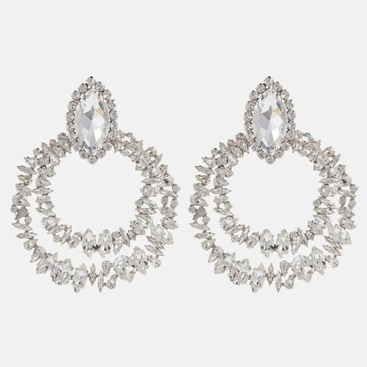 Shiny Rhinestone Big Double Round Earrings Circle Hoop Earrings Jewellery