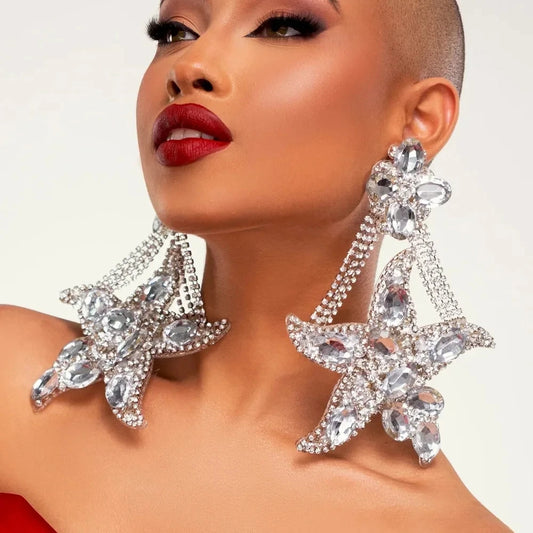 Luxury Starfish Earrings Oversize Crystal Dangle Earring Party Jewelry
