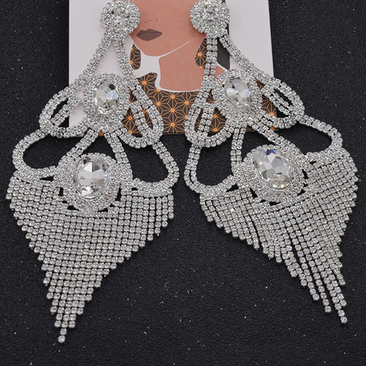 Crystal Drop Earrings Large Rhinestones Earring Dangle Jewelry