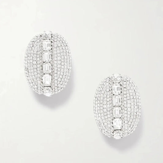 Large Round Clip on Earrings Rhinestone Clip Earring Wedding Ear Jewellery