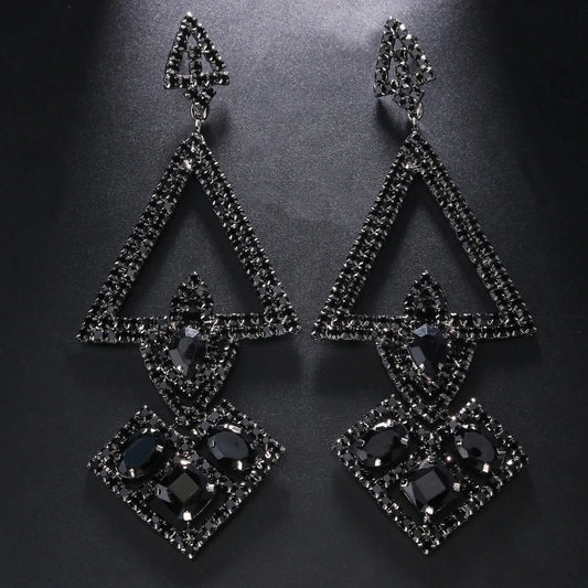 Rhinestone Black Long Drop Earrings Crystal Earring for Women