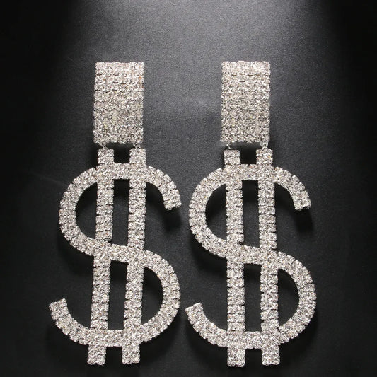 Elegant Large Crystal Dollar Earrings Lady Money Rhinestone Dangle Earrings Jewelry