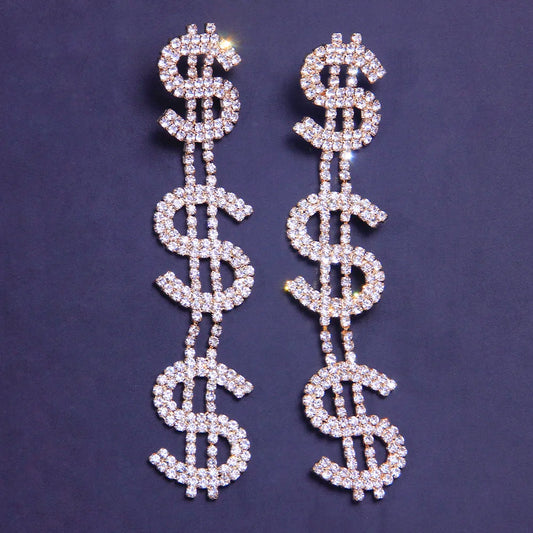 Long Dollar Earring Retro Jewelry Shiny Letter Rhinestone Earrings