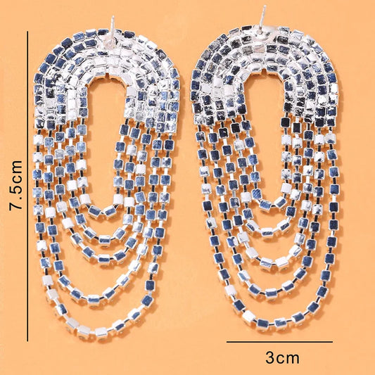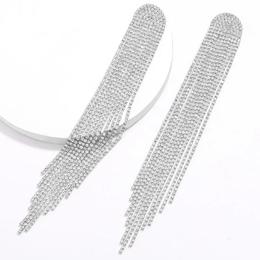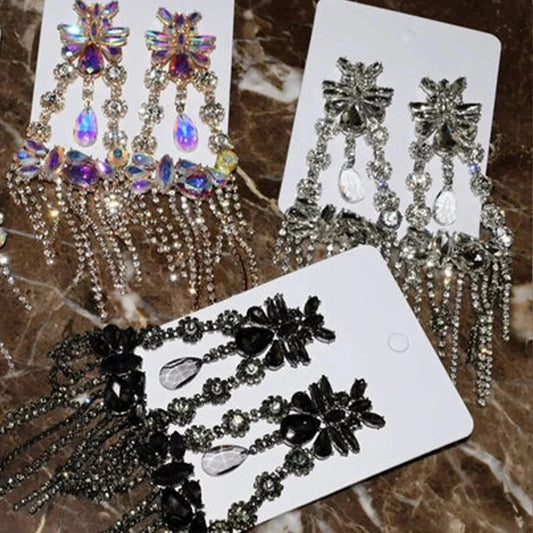 Shiny Rhinestone Long Tassel Drop Earrings Dangle Earring Statement Jewelry