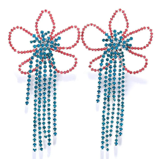 Colourful Flower Earrings Long Tassel Drop Earring Drag Queen Jewellery