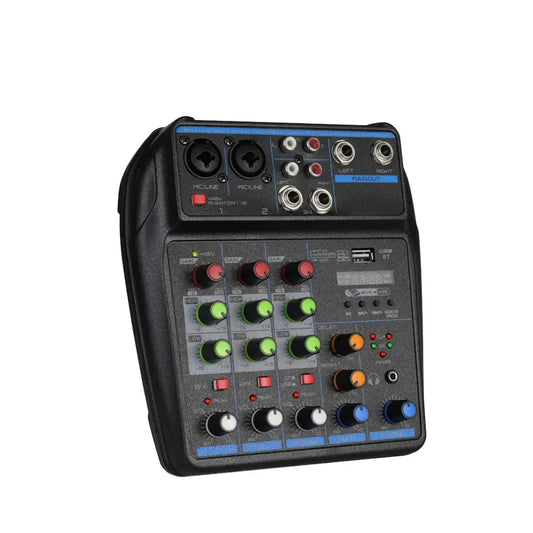 4 Channel Mixer DJ Mixing Console with Bluetooth 48V Phantom Power Monitor Karaoke System USB Mixer Audio