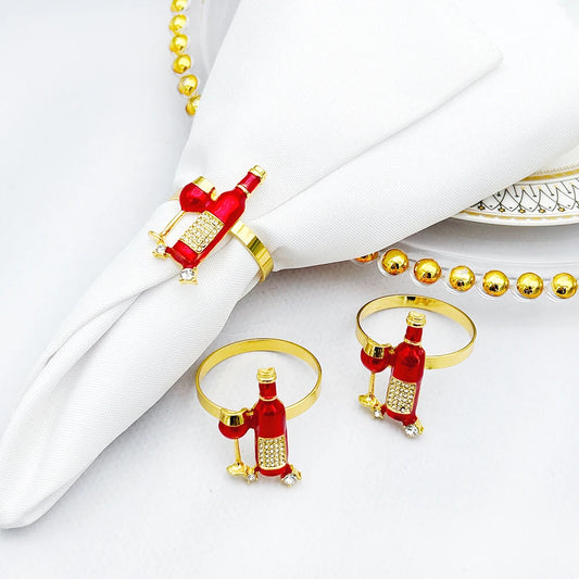 6Pcs Wedding Napkin Rings Red Wine Bottle Napkin Rings Holder for Wedding Birthday Party Decor Christmas Napkin Buckle ERD177