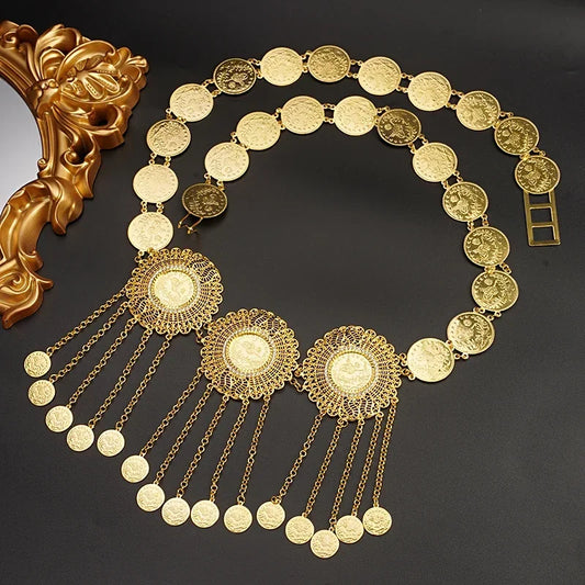 Women Body Chain Coin Tassel Waist Chains Middle East Bridal Jewellery Gold Plated Belt Free Shipping
