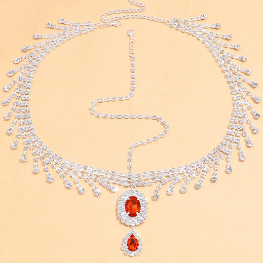 Red Crystal Headband Hair Chain Water Drop Head Chain Jewellery maang tikka