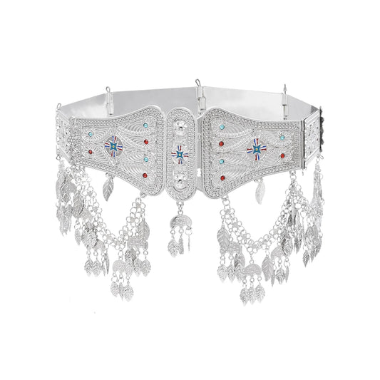 Silver Plated Moroccan Caftan Belt Heart Sequins Tassel Belly Chains Body Jewellery