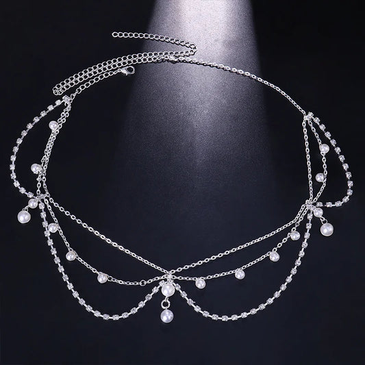 Sexy Women Pearl Shawl Necklaces Collar Shoulder Long Chain Pendants Jewellery Accessories