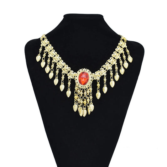 Traditional India Belly Dance Jewellery Sets Red Acrylic Crystal Bell Tassel Necklace Earrings Bracelet