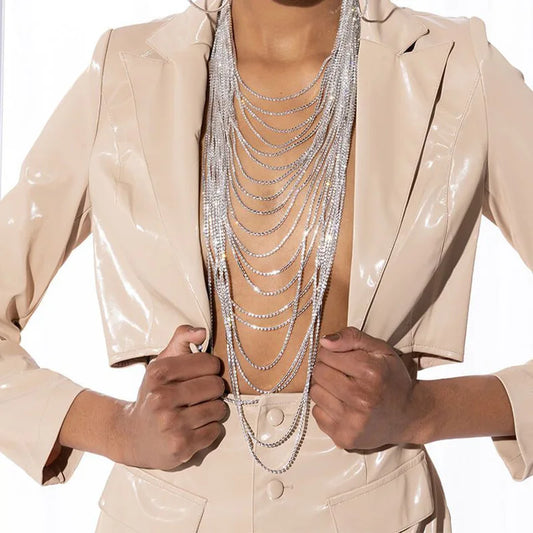 Rave Multilayer Chest Chain Top Bikini Outfits for Women Lingerie Tassel Rhinestone Bra Jewellery