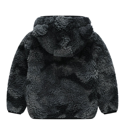 Boys woolen hooded coat solid color zipper coat children's winter clothes