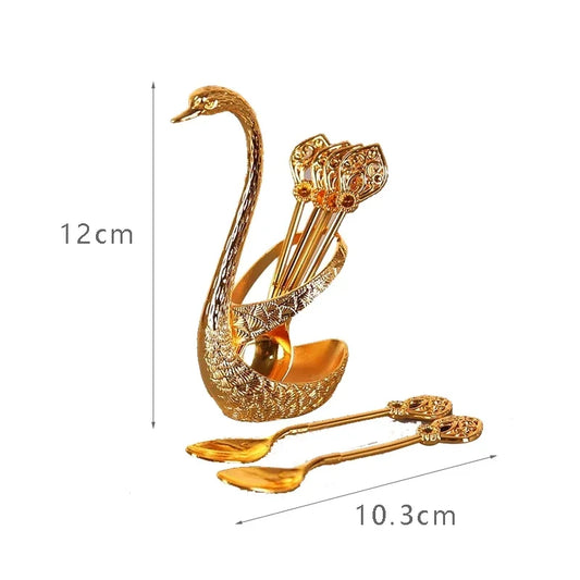 Coffee Spoon Set Metal Swan Base Holder Dessert Spoon Organizer with 6pcs Spoons Teaspoon Dessert Flatware Set