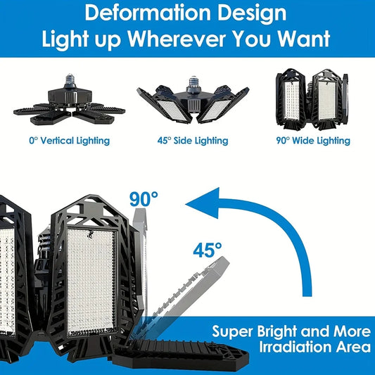Deformable LED Garage Lights Bulb with 7+1 Adjustable Panels E26/E27 LED Bulb Ceiling Lighting
