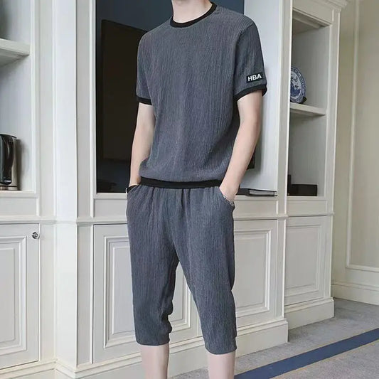 Men's Casual Sports Ice Silk Short Sleeve Summer One-piece Clothes Set