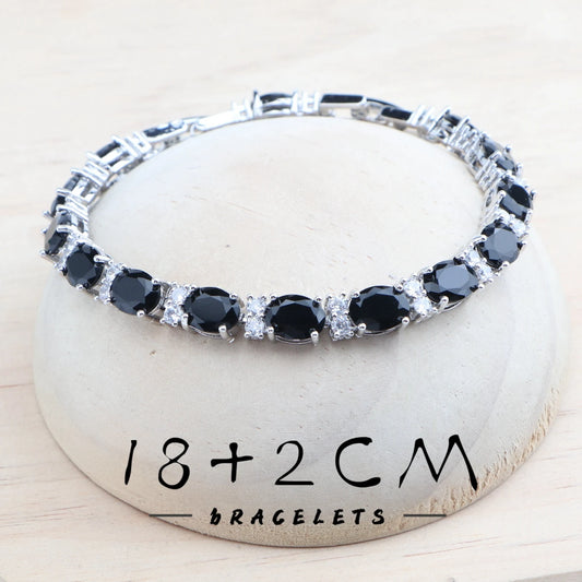 925 Silver Bridal Jewelry Sets Wedding Black Zircon Bracelets Earrings Rings Pendant Necklace Set For Women