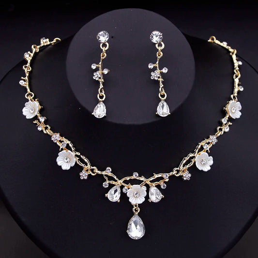 Gorgeous Crystal Bride Jewelry Sets for Women Luxury Flower Choker Necklace Earrings Wedding Dress Bridal Necklace Sets Fashion