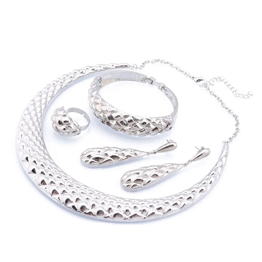 Luxury Silver Plated Wedding Beads Jewellery Set