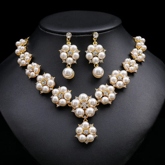 Fashion Women Bridal Elegant Wedding 3pcs/set Party Pearl Rhinestone Angle Necklace Earrings Jewelry Set Banquet Gift