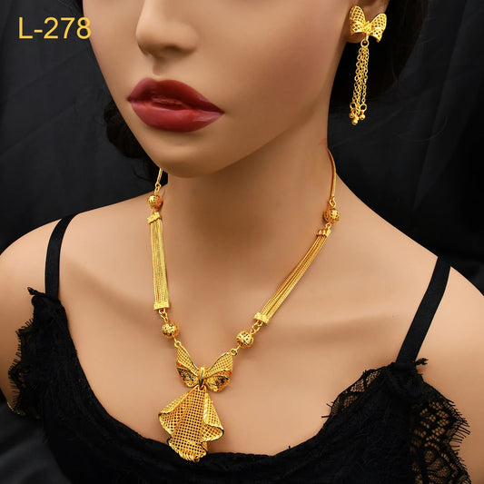 Gold Plated Butterfly Pendant Necklace Earrings Set African Drop Earrings Jewellery Sets