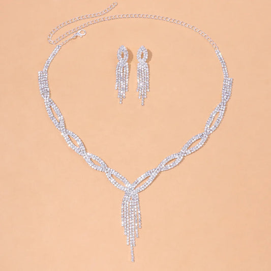 Fashion Classic Elegant Tassel Crystal Bridal Jewelry Sets African Rhinestone Wedding Necklace Earrings Bracelet Sets
