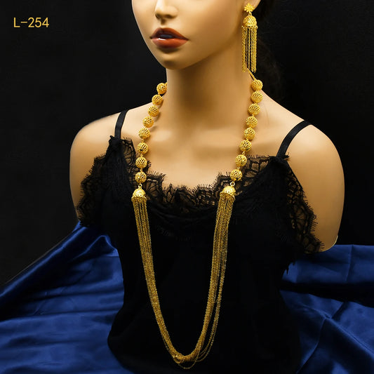 NEW Dubai Luxury Long Necklace&Earrings Sets for Bridal Indian 24k Gold Plated Choker Jewelry With Tassel Earrings Banquet Gifts