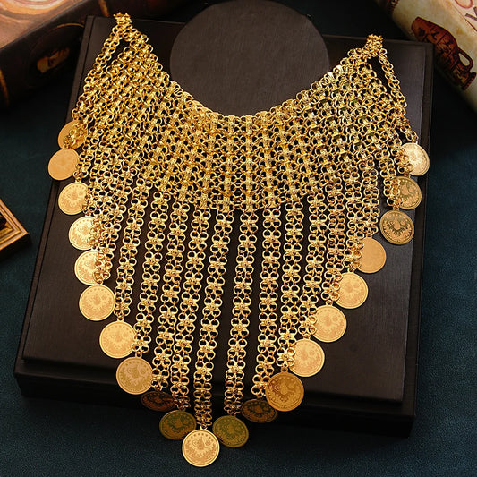 New Tassels Gold Plated Coin Necklace for Women Turkish Bridal Chains Necklaces Ethinc Wedding Jewelry Bride Gifts