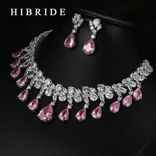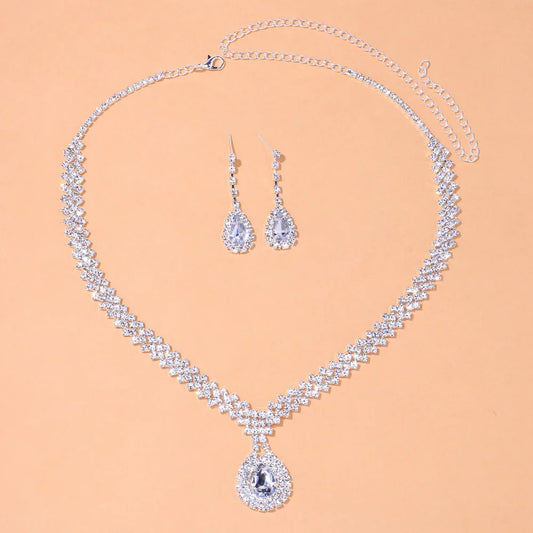 Top Quality Tear Drop Shape AAA Cubic Zirconia Bridal Wedding Jewelry Sets,White Gold Color Jewelry Set N-59