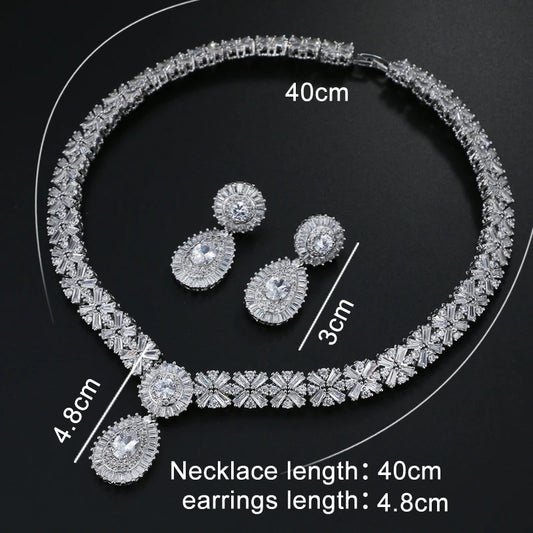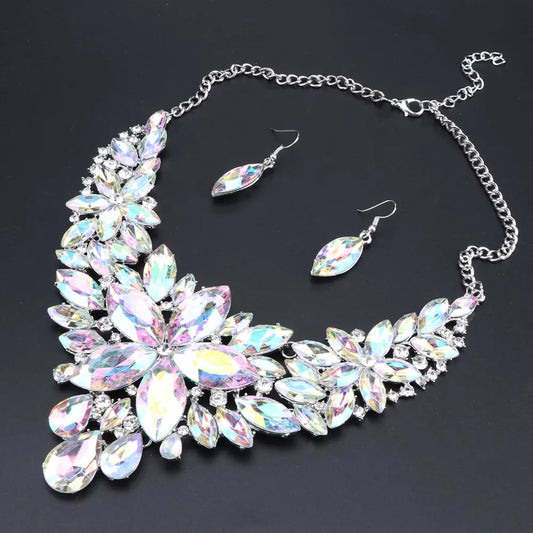 Silver Color Crystal Flowers Bridal Jewelry Set For Women Statement Necklace Earring
