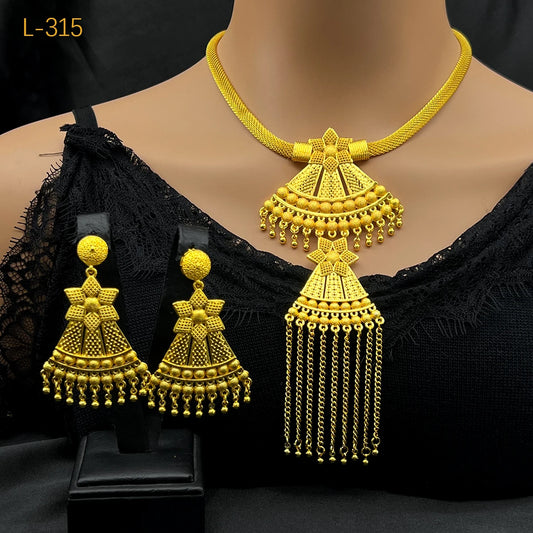 Dubai Indian African Tassel Necklace Earrings Jewelry Set 24K Gold Plated Bridal Jewellery